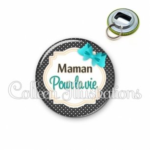 Image imprimée en haute résolution sur papier de qualité, protégée d'un film plastique, et sertie sur une coque métallique avec dos décapsuleur.