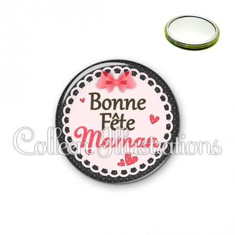 Miroir simple avec dos métallique décoré d'une image fantaisie et texte.