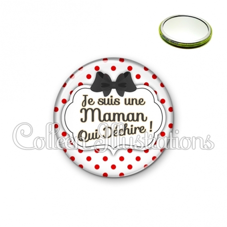 Miroir simple avec dos métallique décoré d'une image fantaisie et texte.