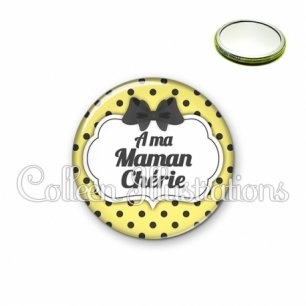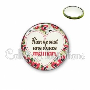 Miroir simple avec dos métallique décoré d'une image fantaisie et texte.