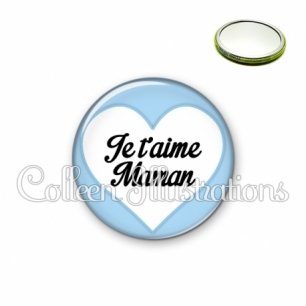 Miroir simple avec dos métallique décoré d'une image fantaisie et texte.