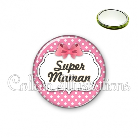 Miroir simple avec dos métallique décoré d'une image fantaisie et texte.