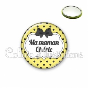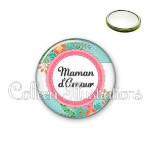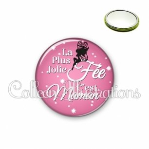 Miroir simple avec dos métallique décoré d'une image fantaisie et texte.