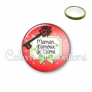 Image imprimée en haute résolution sur papier de qualité, protégée d'un film plastique, et sertie sur une coque métallique avec dos miroir. Une seule face, non grossissante.