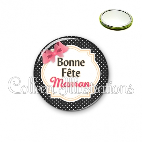 Miroir simple avec dos métallique décoré d'une image fantaisie et texte.