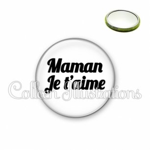 Miroir simple avec dos métallique décoré d'une image fantaisie et texte.