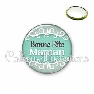 Image imprimée en haute résolution sur papier de qualité, protégée d'un film plastique, et sertie sur une coque métallique avec dos miroir. Une seule face, non grossissante.