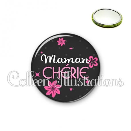 Miroir simple avec dos métallique décoré d'une image fantaisie et texte.