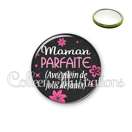 Image imprimée en haute résolution sur papier de qualité, protégée d'un film plastique, et sertie sur une coque métallique avec dos miroir. Une seule face, non grossissante.