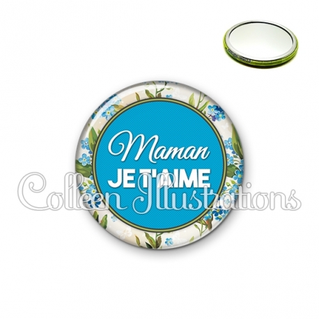 Miroir simple avec dos métallique décoré d'une image fantaisie et texte.