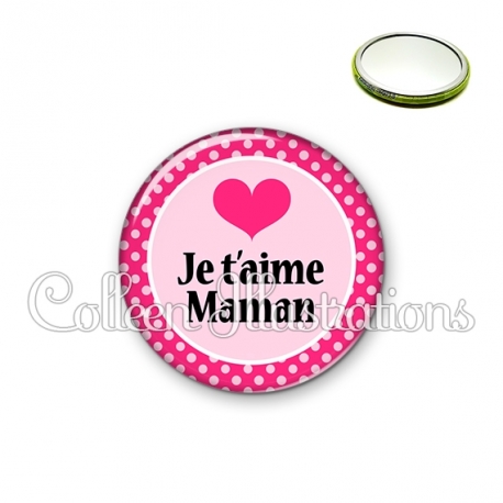 Miroir simple avec dos métallique décoré d'une image fantaisie et texte.