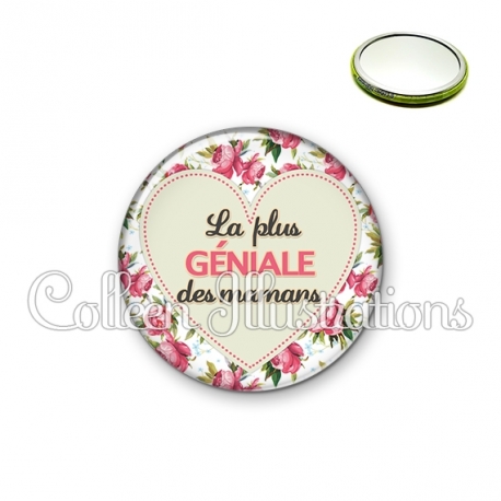 Miroir simple avec dos métallique décoré d'une image fantaisie et texte.