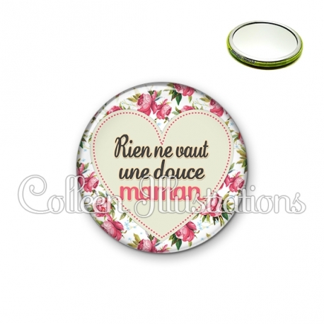 Miroir simple avec dos métallique décoré d'une image fantaisie et texte.