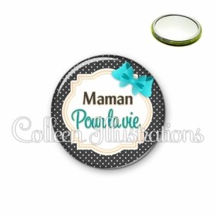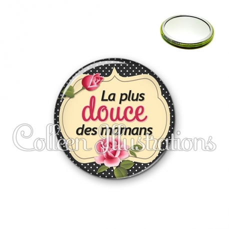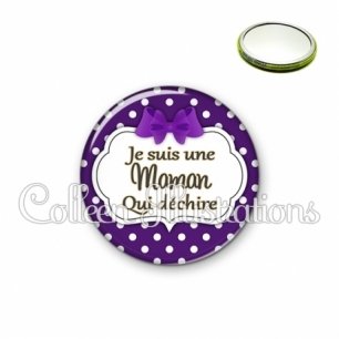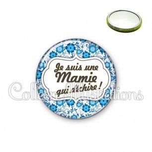 Miroir simple avec dos métallique décoré d'une image fantaisie et texte.