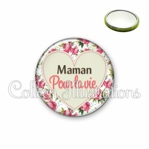 Image imprimée en haute résolution sur papier de qualité, protégée d'un film plastique, et sertie sur une coque métallique avec dos miroir. Une seule face, non grossissante.