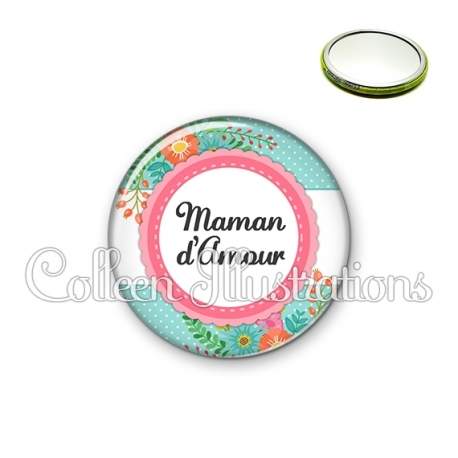 Miroir simple avec dos métallique décoré d'une image fantaisie et texte.