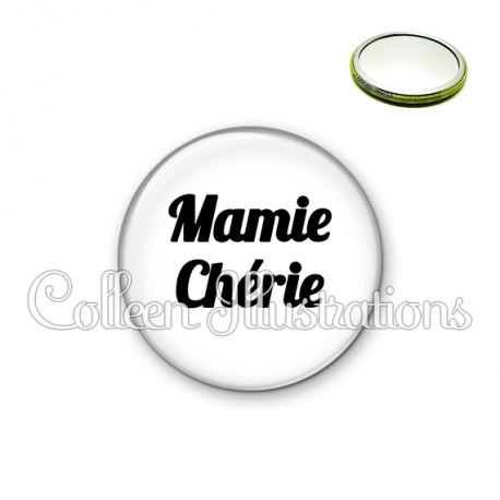 Image imprimée en haute résolution sur papier de qualité, protégée d'un film plastique, et sertie sur une coque métallique avec dos miroir. Une seule face, non grossissante.