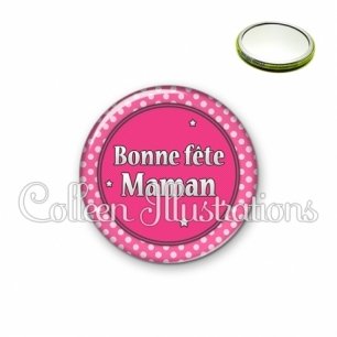 Image imprimée en haute résolution sur papier de qualité, protégée d'un film plastique, et sertie sur une coque métallique avec dos miroir. Une seule face, non grossissante.