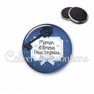 Image imprimée en haute résolution sur papier de qualité, protégée d'un film plastique, et sertie sur une coque métallique avec dos aimanté.