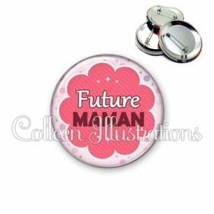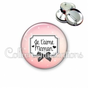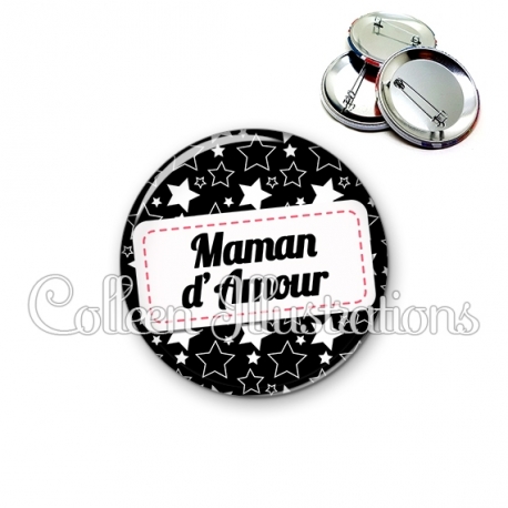 Image imprimée en haute résolution sur papier de qualité, protégée d'un film plastique, et sertie sur une coque et épingle métallique.
