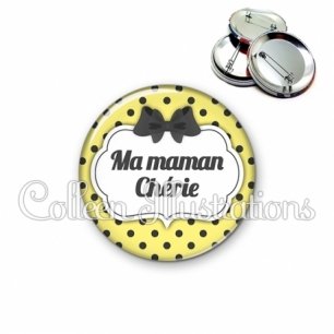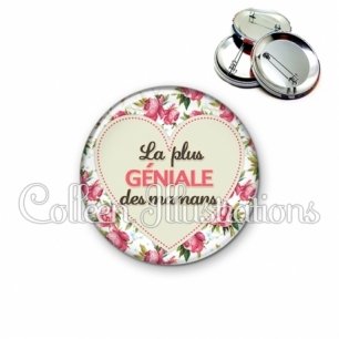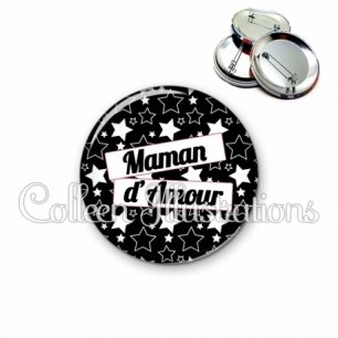Image imprimée en haute résolution sur papier de qualité, protégée d'un film plastique, et sertie sur une coque et épingle métallique.