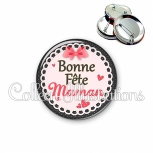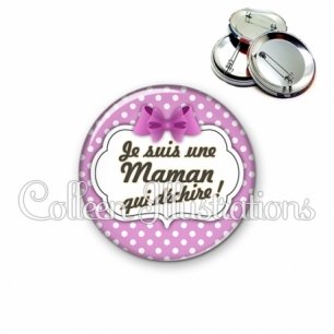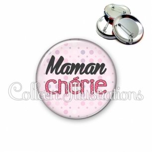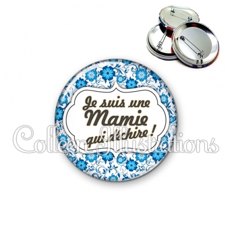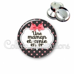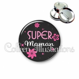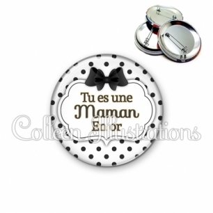 Image imprimée en haute résolution sur papier de qualité, protégée d'un film plastique, et sertie sur une coque et épingle métallique.