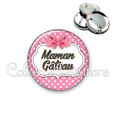 Image imprimée en haute résolution sur papier de qualité, protégée d'un film plastique, et sertie sur une coque et épingle métallique.