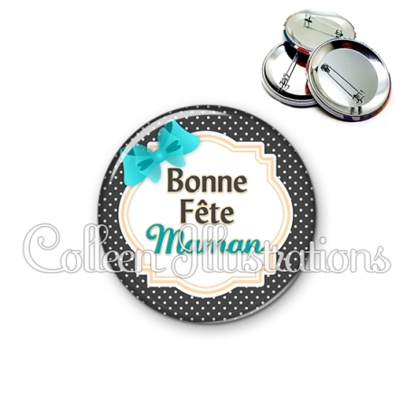 Image imprimée en haute résolution sur papier de qualité, protégée d'un film plastique, et sertie sur une coque et épingle métallique.