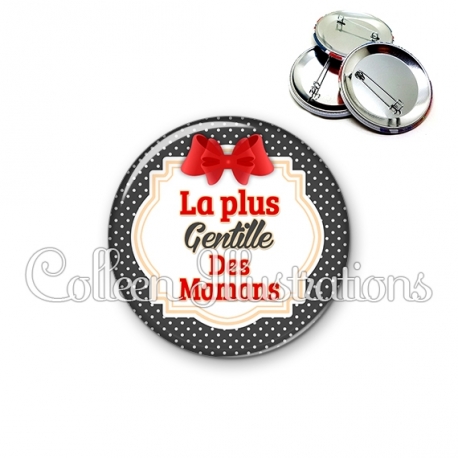 Image imprimée en haute résolution sur papier de qualité, protégée d'un film plastique, et sertie sur une coque et épingle métallique.