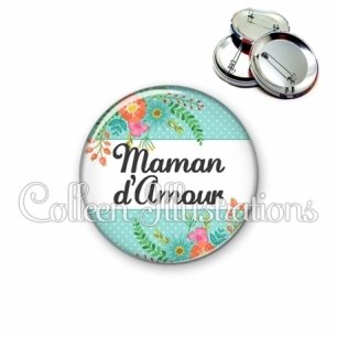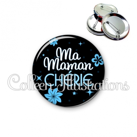 Image imprimée en haute résolution sur papier de qualité, protégée d'un film plastique, et sertie sur une coque et épingle métallique.