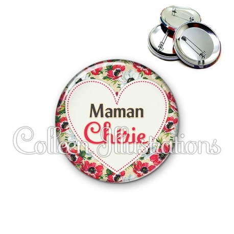Image imprimée en haute résolution sur papier de qualité, protégée d'un film plastique, et sertie sur une coque et épingle métallique.