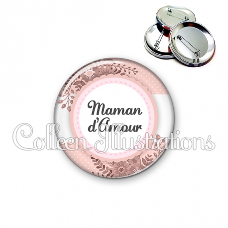 Image imprimée en haute résolution sur papier de qualité, protégée d'un film plastique, et sertie sur une coque et épingle métallique.