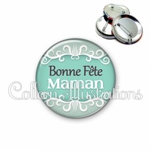 Image imprimée en haute résolution sur papier de qualité, protégée d'un film plastique, et sertie sur une coque et épingle métallique.