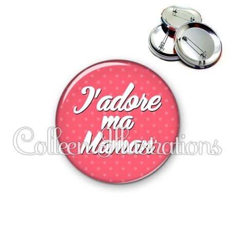 Image imprimée en haute résolution sur papier de qualité, protégée d'un film plastique, et sertie sur une coque et épingle métallique.
