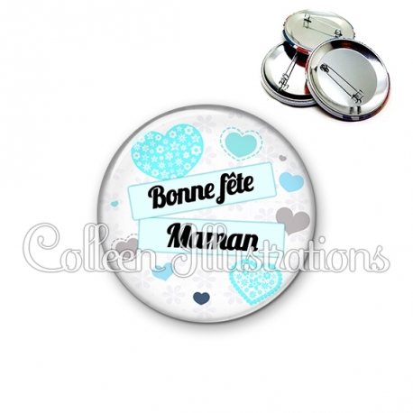 Image imprimée en haute résolution sur papier de qualité, protégée d'un film plastique, et sertie sur une coque et épingle métallique.