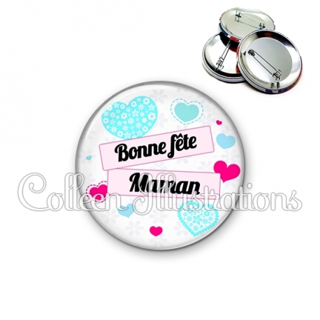 Image imprimée en haute résolution sur papier de qualité, protégée d'un film plastique, et sertie sur une coque et épingle métallique.