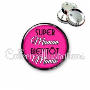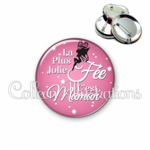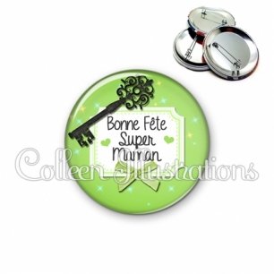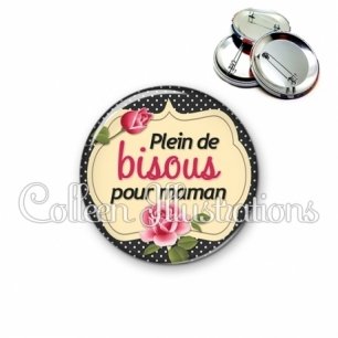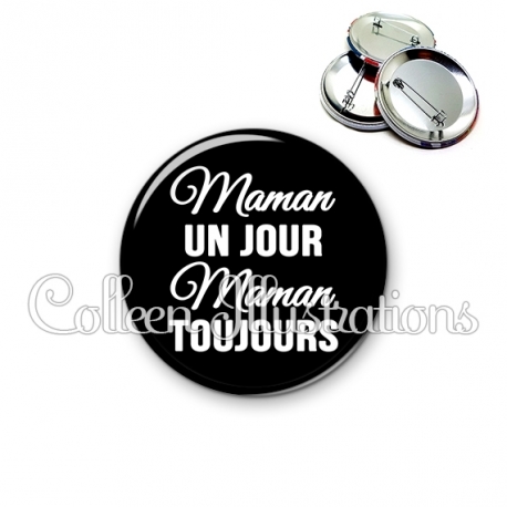 Image imprimée en haute résolution sur papier de qualité, protégée d'un film plastique, et sertie sur une coque et épingle métallique.