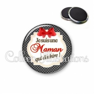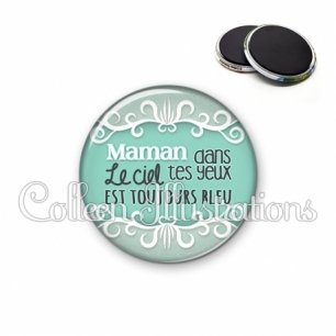 Image imprimée en haute résolution sur papier de qualité, protégée d'un film plastique, et sertie sur une coque métallique avec dos aimanté.