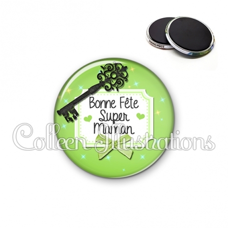 Image imprimée en haute résolution sur papier de qualité, protégée d'un film plastique, et sertie sur une coque métallique avec dos aimanté.