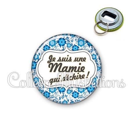 Image imprimée en haute résolution sur papier de qualité, protégée d'un film plastique, et sertie sur une coque métallique avec dos décapsuleur.