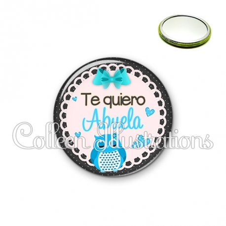 Miroir simple avec dos métallique décoré d'une image fantaisie et texte.