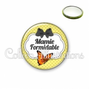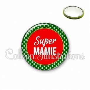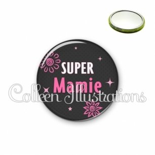 Miroir simple avec dos métallique décoré d'une image fantaisie et texte.