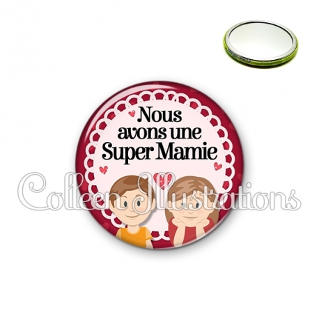 Miroir simple avec dos métallique décoré d'une image fantaisie et texte.