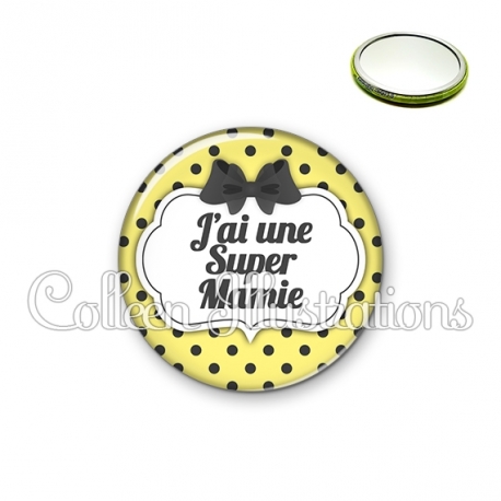Miroir simple avec dos métallique décoré d'une image fantaisie et texte.