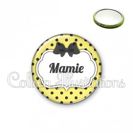 Miroir simple avec dos métallique décoré d'une image fantaisie et texte.