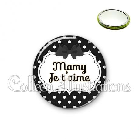 Miroir simple avec dos métallique décoré d'une image fantaisie et texte.