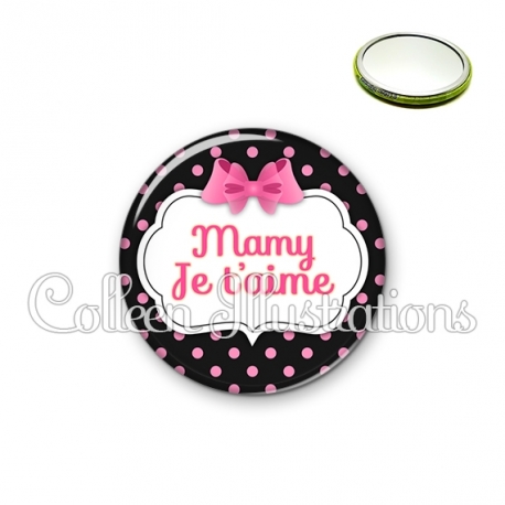 Miroir simple avec dos métallique décoré d'une image fantaisie et texte.