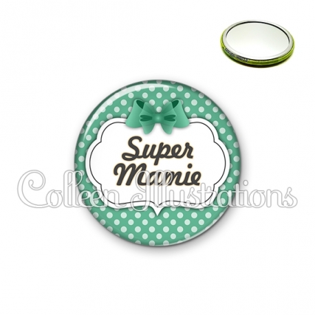 Miroir simple avec dos métallique décoré d'une image fantaisie et texte.