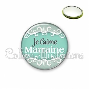 Miroir simple avec dos métallique décoré d'une image fantaisie et texte.