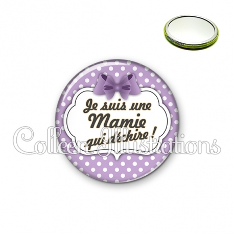 Miroir simple avec dos métallique décoré d'une image fantaisie et texte.